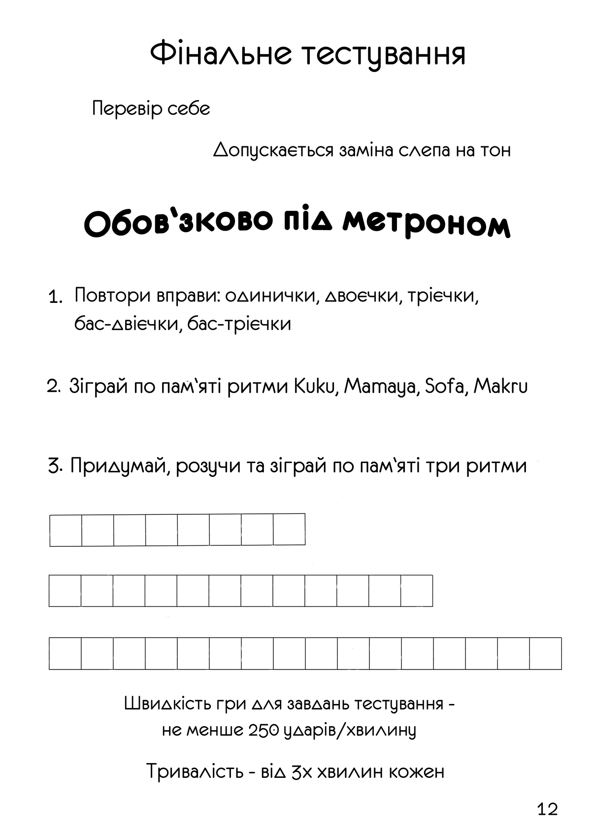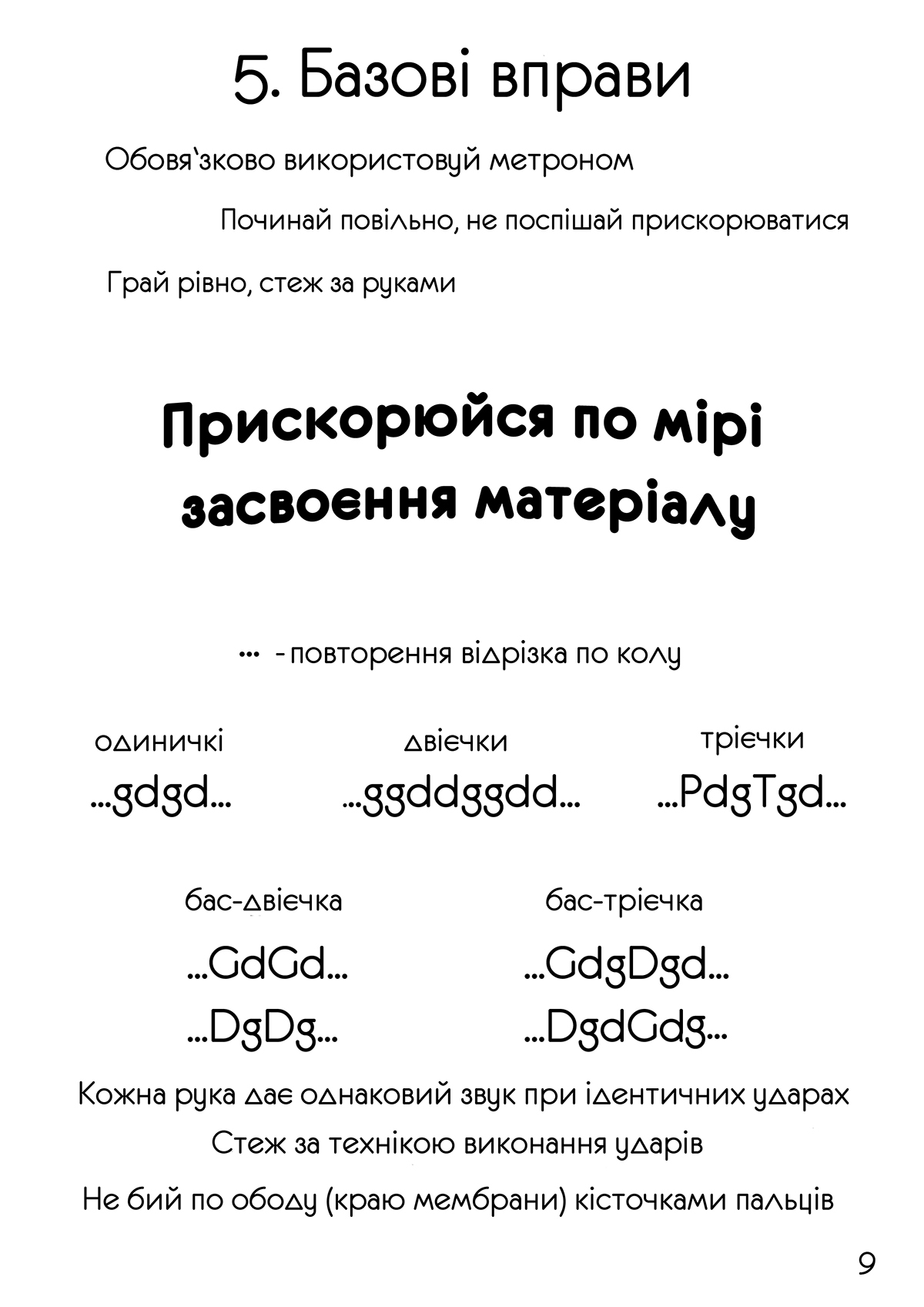 За одну годину даю всю базу с техніки гри, вправи, ритми та нотатки для подальших самостійних тренувань