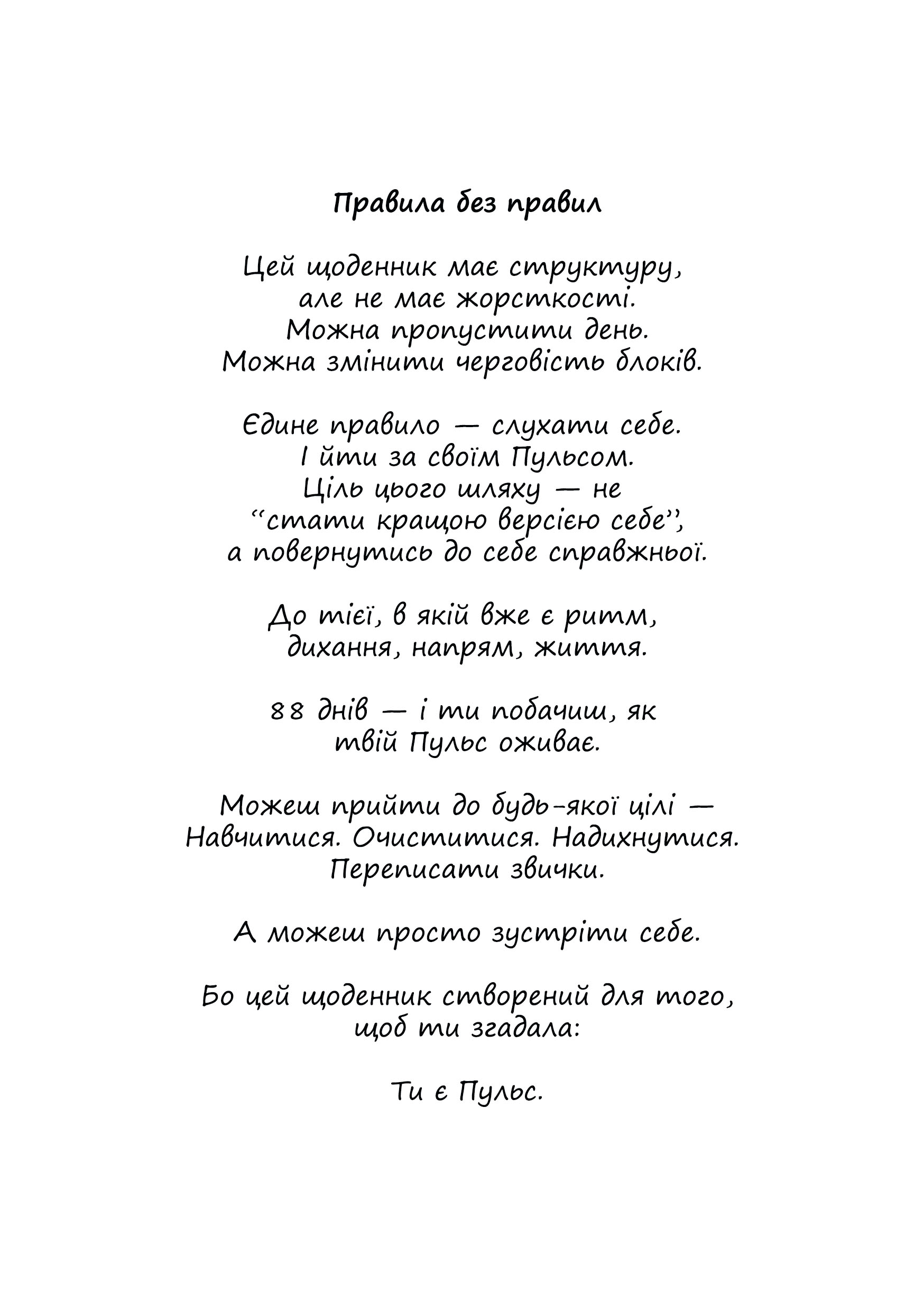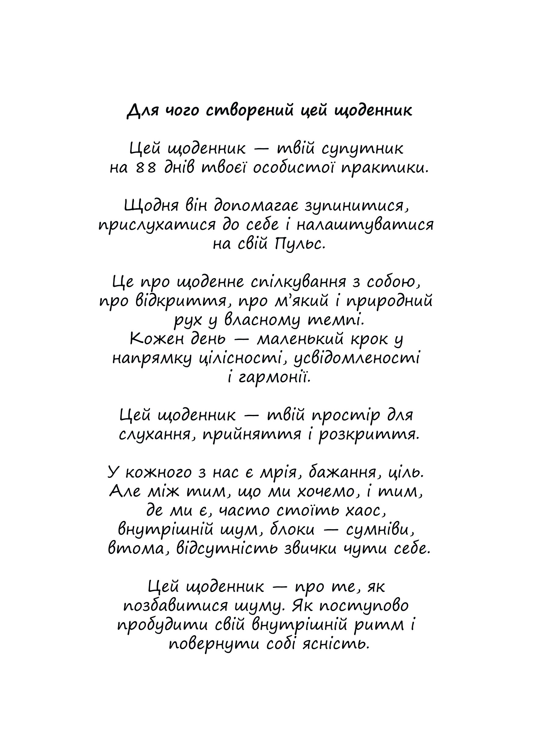 Протягом 88 днів ви формуєте нову звичку — чути свій внутрішній ритм, помічати емоційні стани та жити в гармонії з власним темпом.