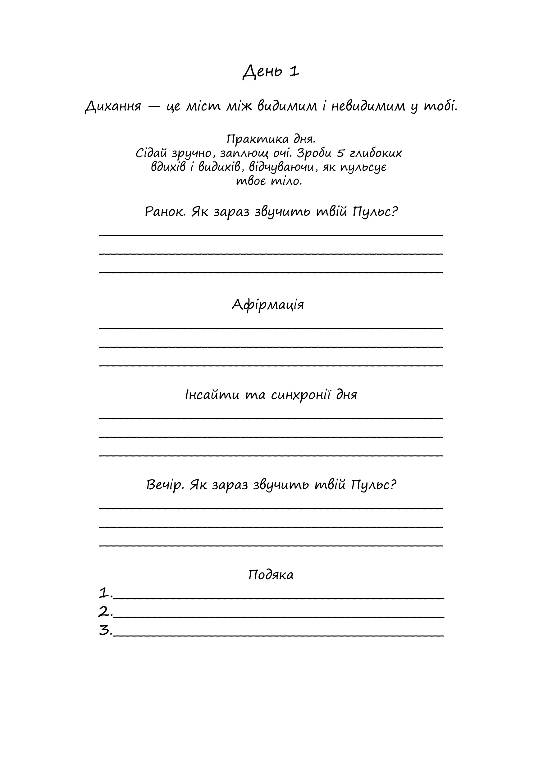 - місце для записів ранкових і вечірніх спостережень, роздумів, інсайтів і вдячностей.